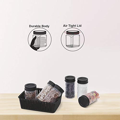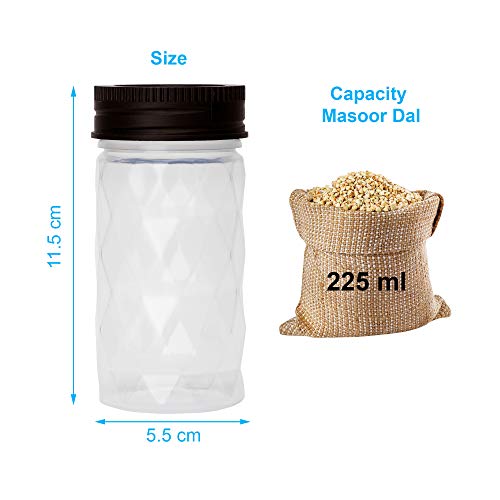 100% Safe to Use Storage Jars: These jars are made of high quality food gradable and BPA free plastic. These jars are odour free, unbreakable and See through lid is air tight for ensuring the freshness of the contents to be intact for a long period of time. Please note that the jars have been made only from the US FDA approved food grade plastic. Help In Organising Your Kitchen: The box comes in sizes for storing variety of items like Spices, Pluses, Tea, Coffee, Snacks. It is easy to recognize the food items kept inside without opening the lid of jar as these jars have glass like transparency. These Jars can be kept one over others which help in saving lots of space. These jars help in bringing uniformity in your kitchen. These multipurpose Jars are stackable, transparent, airtight, odour free, BPA free and long lasting. The wide open mouth & glass like clarity sip. Elegant, Trendy & Sleek Design. The geometric design all over it makes it very trendy and perfect for contemporary modern kitchen as well for traditional kitchen. So, these jars will makeover your kitchen. Additionally, the trendy design of these jars enhances the looks of your kitchen.
