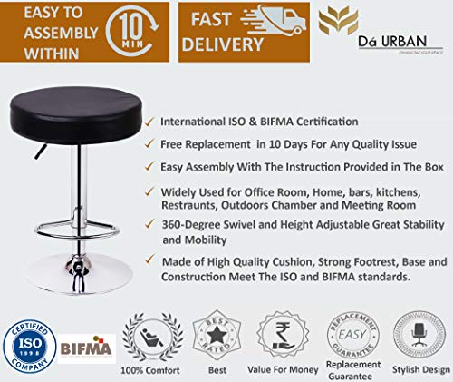 Specification: Da URBAN® ROUNDBAR Pack of 2 Height Adjustable & Revolving Bar Stool / Kitchen Chair (Black)