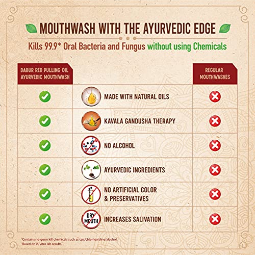 Dabur Red Pulling Oil : Ayurvedic Mouthwash Kavala Gandusha Therapy | Oil Pulling for Oral Detox for Teeth and Gums…