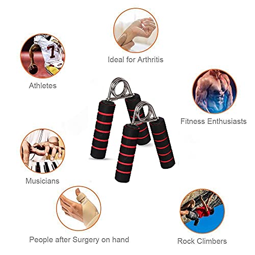 Strong & Tough Steel Material Built with high-intensity and high-grade carbon steel, electroplated and lustrous on surface, it has enhanced spring to endure long-term and frequent use. The spring is heavy duty and securely attached, when in use, it has a smooth and quiet motion. ABS Plastic Handle The ABS plastic handle and spring are connected firmly and each hand grip is expertly crafted providing long-term strength and reliable use for long time. Anti-slip Rubber Grip With the high elasticity comfortable rubber handle, keep your fingers from hurting. The rubble grips on handle help to control from accidental slip from your hand when it get sweaty. Ergonomically Engineered Design The ergonomic design allows the hand exerciser to provide effective finger, hand, wrist and forearm workout. The groove design makes your finger connect with rubber grip closely. IDEAL HAND AND FINGER EXERCISER AND REHABILITATION EQUIPMENT Perfect for fitness and sports enthusiasts Bodybuilding, weightlifting, rock / wall climbing Golf, tennis, gymnastics Sports that involve wrist / forearm coordination and control Training / strengthening for musicians (guitarists, pianists, violinists) Those who has hand injuries, tendonitis, bone issue, carpal tunnel, tennis elbow.