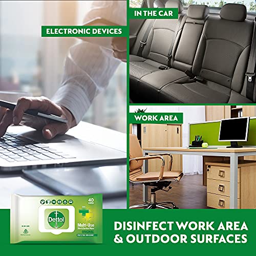 Dettol Disinfectant Sanitizer Wet Wipes for Skin & Surfaces , Original (Pack of 3, 40 Count each) | Moisture-Lock Lid…