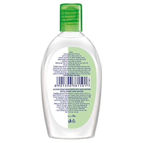 Specification: Dettol Original Germ Protection Alcohol based Hand Sanitizer, 50ml, Pack of 10