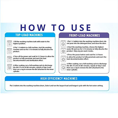 EASY TO USE: Just empty your washer, put 1-3 piece of effervescent table into the drum and carry out “clean washer” cycle, no need to disassemble the washing machine, you can get a fresh and clean washer.