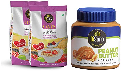 Specification: DiSano Peanut Butter, Crunchy, 25% Protein with Vitamins & Minerals, 1 Kg + Disano Oats with High in Protein and Fibre…