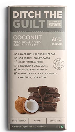 Specification: Ditch The Guilt – Coconut Vegan Dark Chocolate (60g) – Sugar Free – Stevia Sweetened – Lower Calories than Regular Sugar…