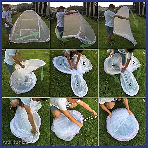Pops up in an Instant and Automatically, Can be folded in less than 30 Seconds. It is constructed of a fine see through mesh fabric. The mesh is woven tightly enough to stop insects from entering but loosely enough to not interfere with ventilation.