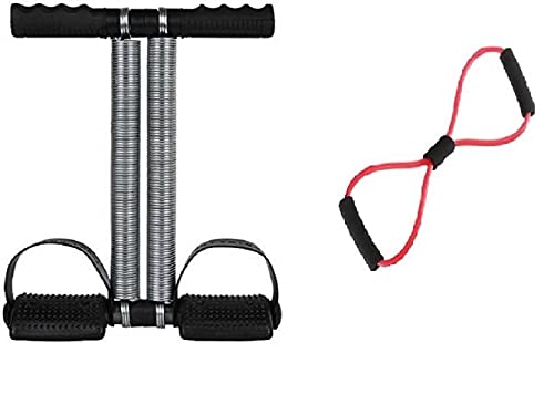 Double Spring AB Exerciser Tummy Trimmer with Toning Tube Resistance Band Combo Gym & Fitness Kit