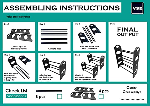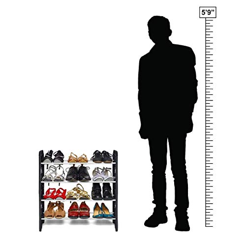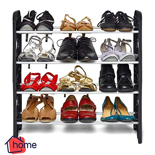 Specification: Printgram Plastic Foldable Light Weight Shoe Rack with 4 Shelves, Upto 8 to 12 Pairs (Black)