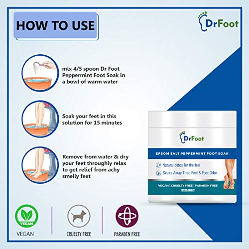 SOOTHE ACHING & TIRED FEET: After a long day at work, how about a relaxing Foot Spa with Dr Foot Epsom Salt. It soaks away bacteria, fungus and leaves your feet completely relaxed and rejuvenated