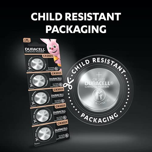 Specification: Duracell Specialty CR2032 Lithium Coin Battery 3V, Pack of 5 Suitable for use in keyfobs, Scales, wearables and Medical…