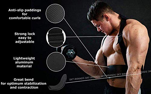 ADJUSTABLE STRAP: The heavy duty steel buckle allows flexibility & fitment to maintain a proper posture according to all individual body types while isolating the arms. NEOPRENE & FOAM PADDED: The arms blaster has neoprene padding to rest against the neck to avoid rashes. Also, the aluminium is foam padded to rest the arms with ease.