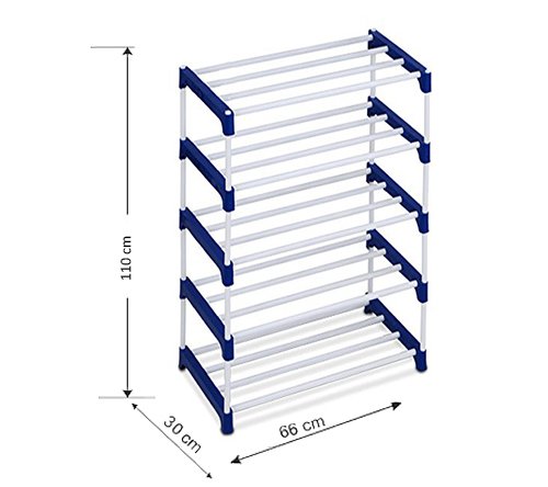 Specification: Ebee 15 Pairs Metal Shoe Rack (Blue, 5 Shelves)
