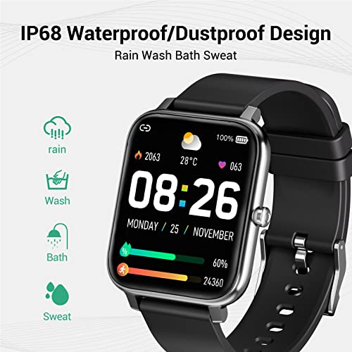 【IP68 Water Resistant & Multi Sports Modes】This smartwatch can withstand dust, spills, raindrops. Sweatproof function and soprt modes free your hands&eyes during exercise and dancing. Just enjoy your funny time.