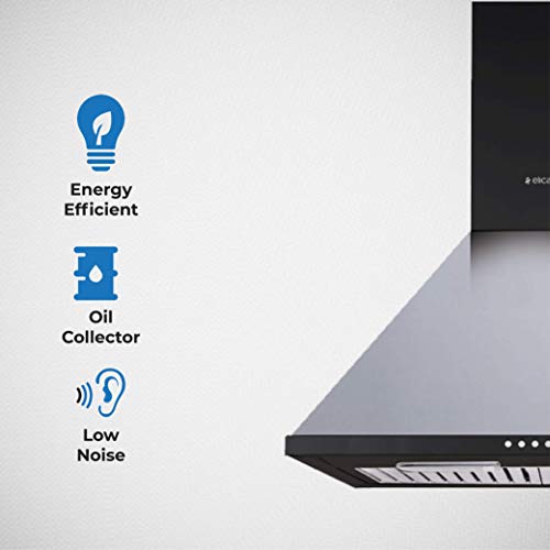 Specification: Elica 60 cm 840 m3/hr Chimney (CONE BF 60 LTW Nero, 2 Baffle Filters, Black)