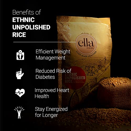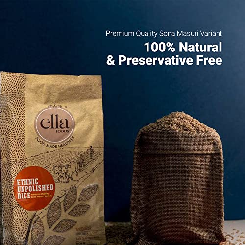 Specification: Ella Spices Ethnic Unpolished Brown Rice 1KG (Pack of 2), Sona Masuri Rice, Naturally Aged, Cold Pasteurized Natural…