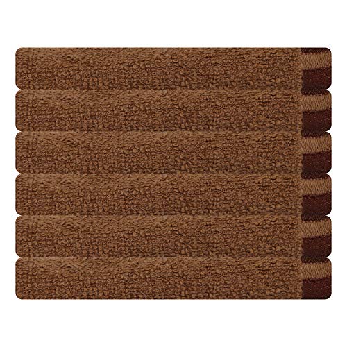 Designed for everyday use, these classic towel are made of 100 percent cotton. Their strong weaves make them highly durable and absorbent. Their dobby style and piece dyed pattern make them a wonderful option. Package contents: 6 face towel. Dimension: face towel 26 x 26 cm color: brown. Gsm: 380.
