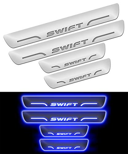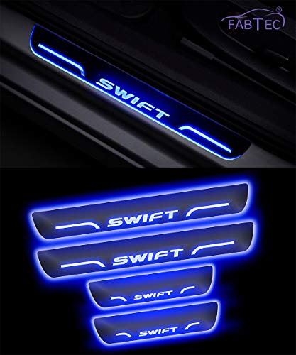 Specification: FABTEC Car Door Foot Step Sill Plate with Mirror Finish LED Car Sill Plate Compatible With Maruti Swift Car (SET OF 4PCS…