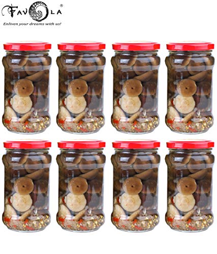 Specification: FAVOLA Essentials Round Lug Glass Jar, Red Lid, 200 ml, Set of 8, Clear