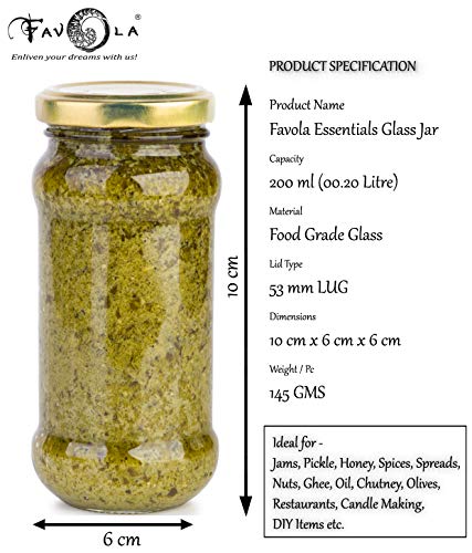 Ideal for : Jams, Pickle, Honey, Spices, Spreads, Nuts, Ghee, Oil, Chutney, Olives, Restaurants, DIY Items.