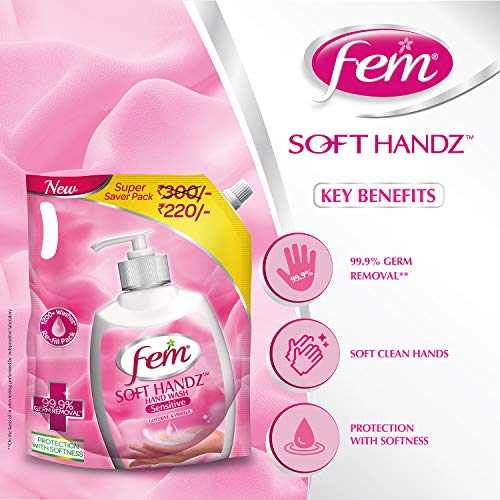Specification: Fem Soft Handz Handwash Sensitive : Kills 99.9% Germs | Enriched with the goodness of Glycerine and Vanilla |1200…
