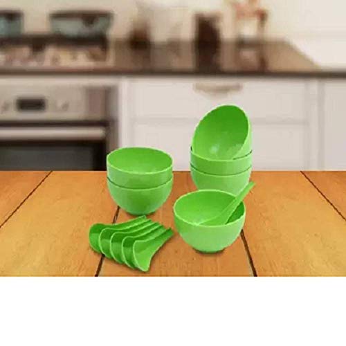 FILPO Soup Bowl 6 Bowls 6 Soup Spoons (Green) Set of 12 Pieces