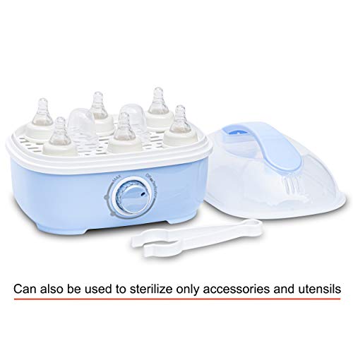COMPLETE CLEAN: With 500W of power the steam penetrates at higher temperature than dishwasher for reliable sanitization. The sterilizer itself is easy to clean and maintain. Comes with a free pair of tongs so that you may pick the hot sterilized articles easily and not contaminate them.