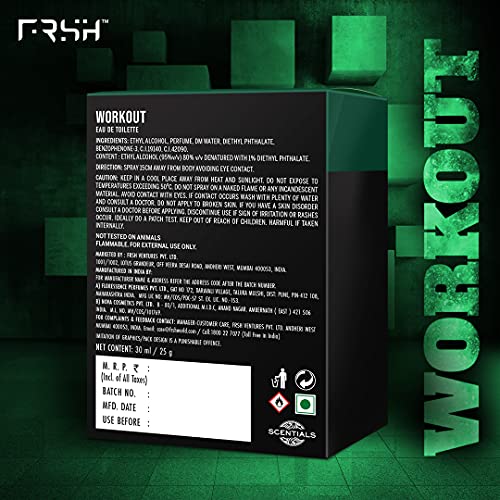 A heady blend of violet, cedar wood and leather; frsh workout is crafted for the man who challenges his limitations each day. Hit the gym or the outdoors anytime and stay frsh and energized throughout! Available in a 30ml lightweight bottle, this perfume is easy to use and super easy to carry!.