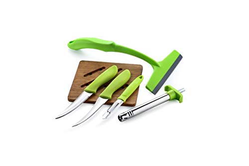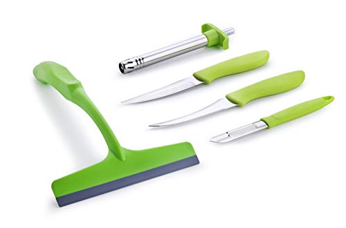 Ganesh Stainless Steel Kitchen Knives with Gas Lighter and Wiper Set, Green
