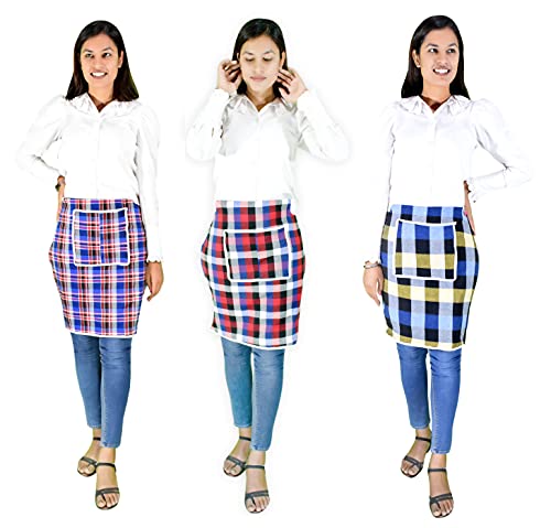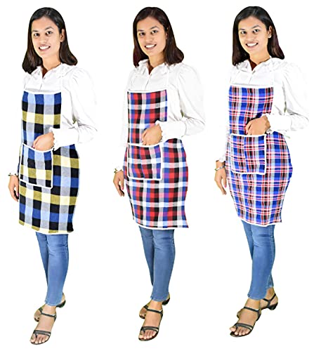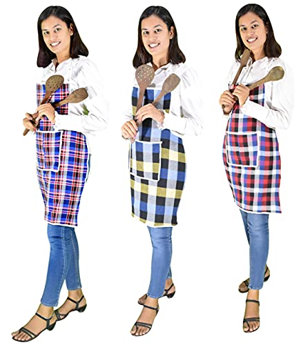 Specification: GLUN® Cotton Kitchen Multi Colour Apron with Front Pocket – Set of 3(Color and Design May Vary)