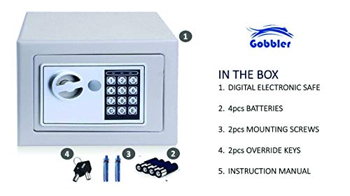 DIGITAL SAFE: Opens with digital pin code or override keys.PIN numbers can be programmed 3 to 8 digits long. Please read the manual carefully before use. If you face any technical issues contact GobblerSales.