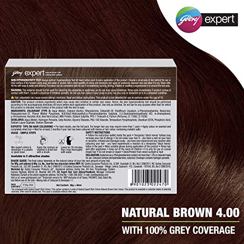 Specification: Godrej Expert Rich Creme Hair Color (Pack of 4) – 4.00 Natural Brown