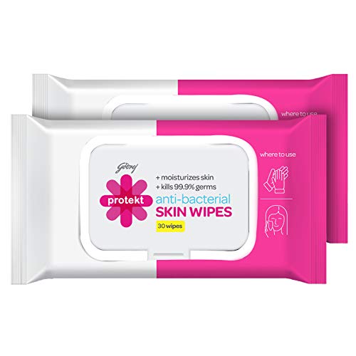 Godrej Protekt Anti-bacterial Skin Wipes – Pack of 2 (30 Wipes each) – Kills 99.9% Germs & Moisturizes Skin, No-Alcohol…
