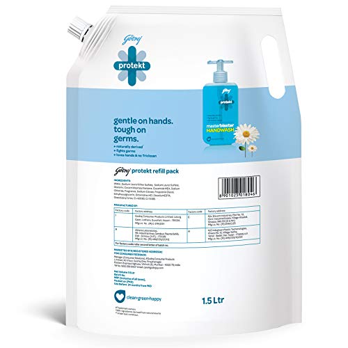 Specification: Godrej Protekt Germ Fighter Handwash Refill Pack | Aqua | Germ Protection & Soft on Hands – 1.5 L