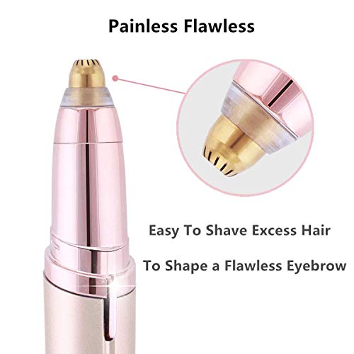 Feature1. Designed to trim eyebrowsit helps you maintain healthy and perfect eyebrows. 2. Painlesseffective, aim at the smallest area to keep those perfect eyebrows. 3.Built-in soft led lights help you see the finest hair. Can be used at any time. 4. Anti-allergic treatment of the headgold plated head is hypo-allergenic. Suitable for all skins! How to use step1press the buttonlight will turn on. Step2 use on cleandry skin. Pull skin tight and move in smallcircular motions. Specification name painless eyebrow remover size 110*13mm weight 88g color rose gold package included 1 x manual 1 x brush for cleaning 1 x eyebrow hair remover.