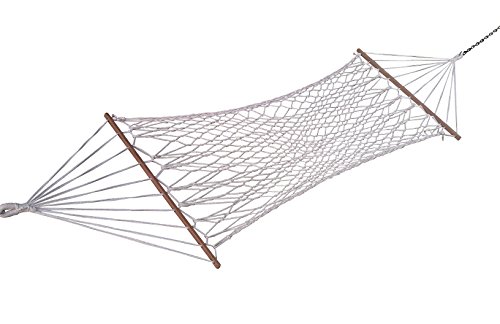 Single Person 3 feet Wide Basics Natural Rope hammock is a great choice to start with if you are trying a hammock for the first time. Made out of 100 percent Cotton rope which is 7mm thick tightly twisted and Outdoor finished hardwood spreader bars. This economy hammock is highly comfortable and is a great option in terms of value for money. This hammock accommodates 1 adult comfortably. The natural cotton is user friendly and soft on the body. The hammock withstands a total weight capacity of nothing less than 220 lbs and can be mounted between 2 trees, poles or on a hammock stand. In addition, this hammock is easy to carry and aptly designed for your trekking and camping needs. What’s more, the hammock is also outdoor resistant and brings tranquility and peace during those lazy week end afternoons. This hammock swings is ideal for large rooms or large balconies or large terraces.