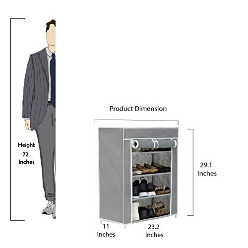 Specification: Happer Premium 4-Tiers Shoe Rack/Multipurpose Storage Rack with Dustproof Cover, (Grey)