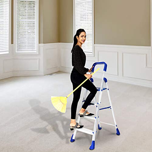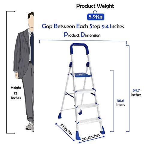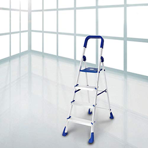 Specification: Happer Premium Foldable Aluminium Step Ladder, Clamber Pro, 4 Steps (Blue & Satin)