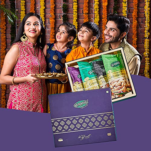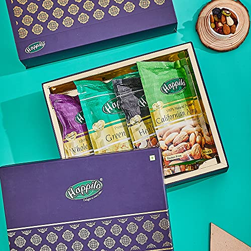 Happilo is one most loved food brands in India. Happilo nuts and berries, dried fruits are sourced from the finest farms across the world and processed at the state of art facility in Bangalore. Gift a pack of good health to your family and friends as this packs comes with zero cholesterol, zero gluten & zero trans fat. Eat healthy, snack smart and move more ! Let’s the celebrations begin. This pack includes almonds, cashews, green raisins, kalmi dates.