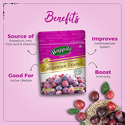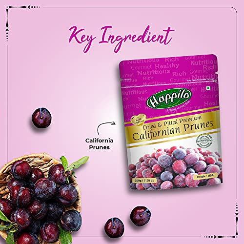 Happilo Premium Dried Californian Pitted Prunes 200g (Pack of 2)| Dehydrated Dried Fruit Candies| Dry Plum | High in…