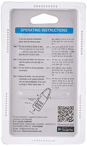 Specification: Harrison PK-1 (3 Digit Code)-0100 Combination Padlock (Multicolor, Painted Finish)