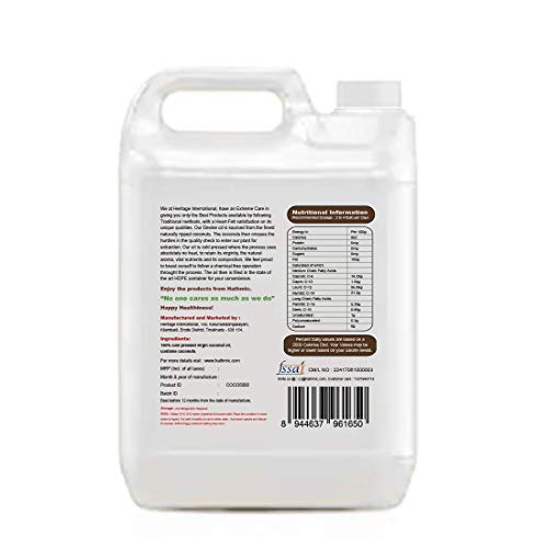Specification: Hathmic Raw Extra Virgin Cold Pressed Coconut Oil, 5L HDPE