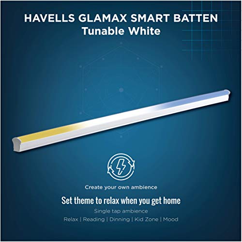 Glamax Smart batten 20 w avaliable in  shades of white, Havells smart batten is compatible with google and Amazon alexa
