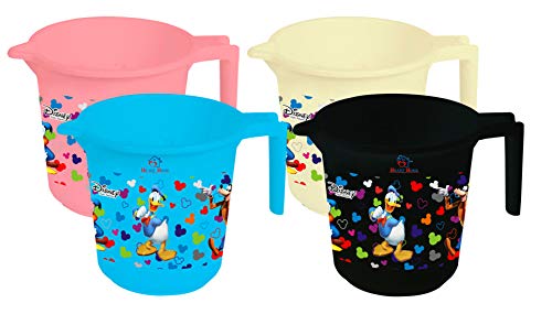 Heart Home Disney Team Mickey Print Plastic Bathing Mugs for Bathroom Bath Accessory, 500 ML (Set of 4,Pink & Cream…