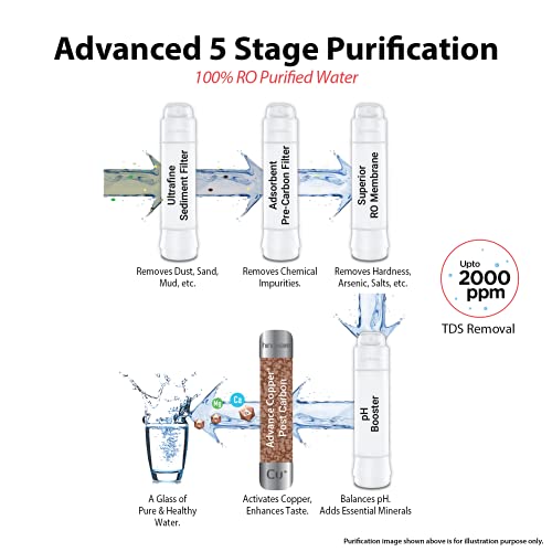 PURIFICATION: Advanced 5 stage RO+pH Booster purification provides 100% RO purified water.