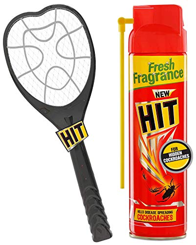 HIT Anti Mosquito Racquet – Rechargeable Insect Killer Bat with LED Light and Cockroach Killer Spray, 200ml Combo