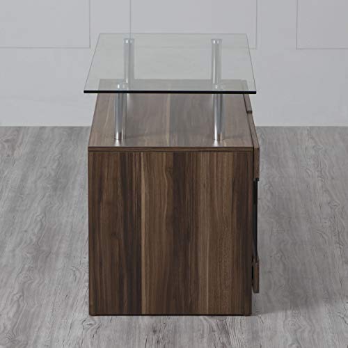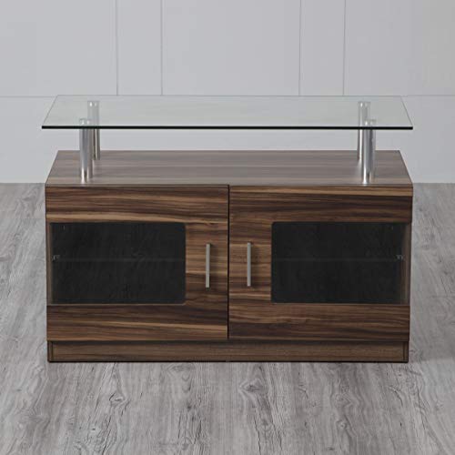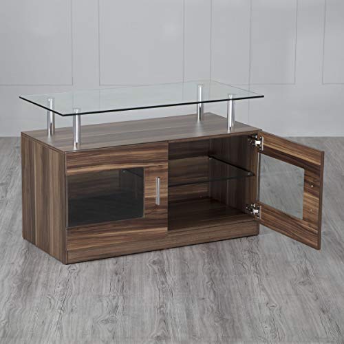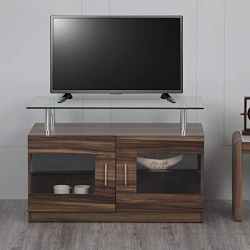 Ideal for any modern and transitional living set up, this tv unit is constructed with Applewood grain paper and a tempered glass top to merge functionality with the visual elements of surprise.