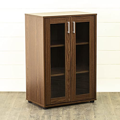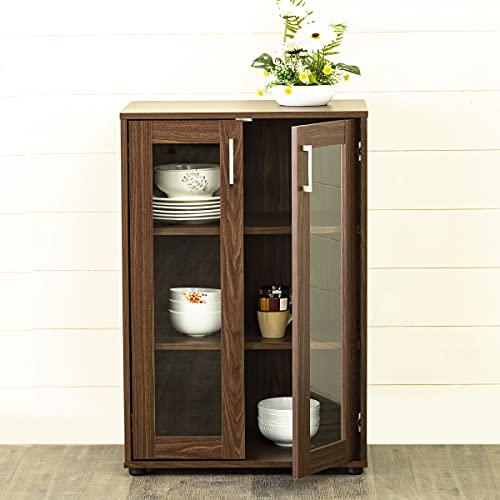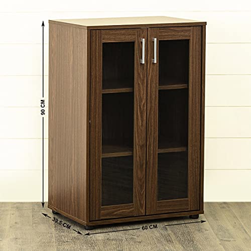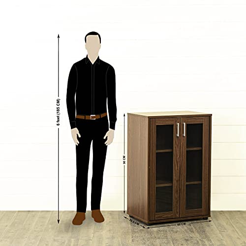 Home Centre Helios Arvis- Giles 2-Glass Door Storage Cabinet, 23 * 15 * 35 Inches (A1047), Walnut