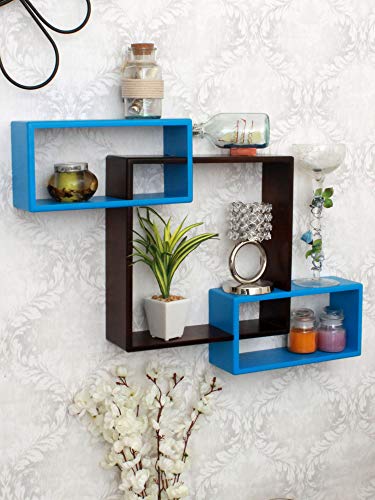 Specification: Home Sparkle Wooden Painted Mozaic Shelf (Brown and Blue)