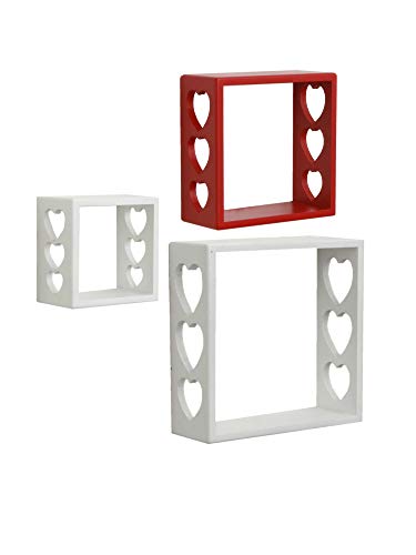 Home Sparkle Engineered Wood Set of 3 Cube Wall Shelves (White and red)