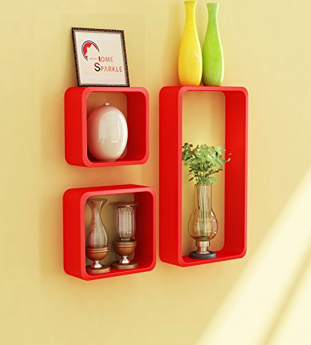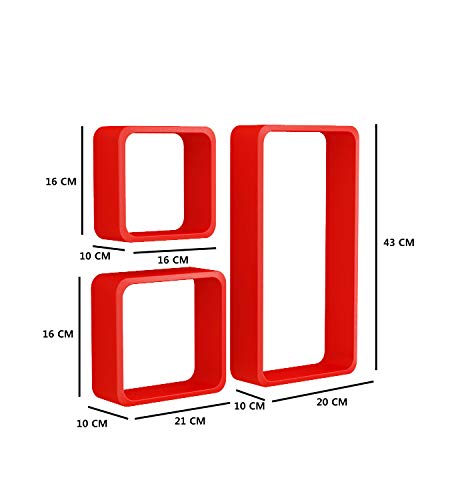 Specification: Home Sparkle Wooden Wall Cube Shelf (Set of 3, Red)
